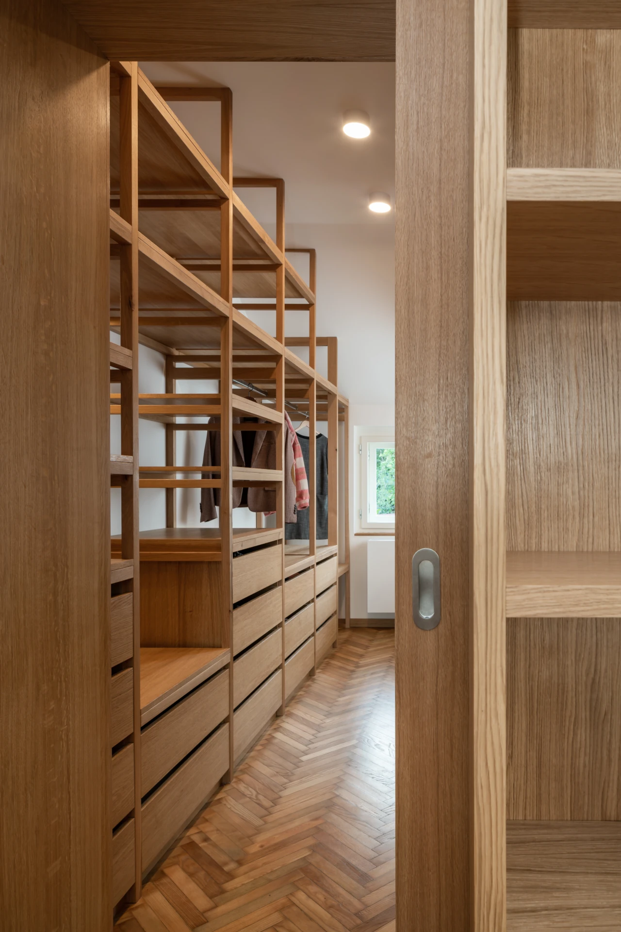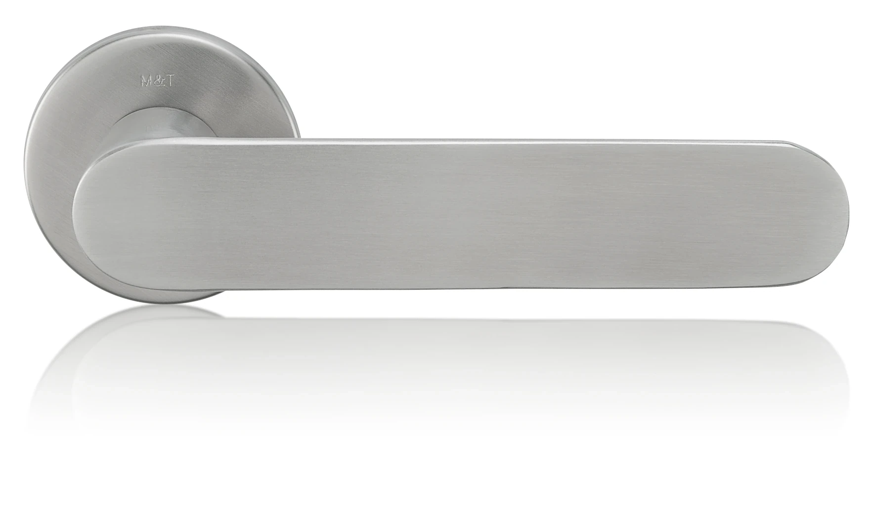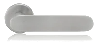 The other doors are of normal height and are decorated with a prominent handle. This is proof that even such a detail can add to the overall appearance of a space. The handles made of stainless steel stand out for their high strength and mechanical resistance. Due to these properties, the NOVA stainless steel handle is not only suitable for interior use, but it can also be used on exterior - i.e. entrance - doors. The fittings with a round rosette are used on interior doors, with a dosage lock on interior doors and in the security version on entrance doors. For this particular implementation, the architects wanted to keep the NOVA handles in the appearance of the base material - the surface of the stainless steel is only treated by grinding, so it has a fine texture. The surface contrasts with the other materials. This is also why the door handle stands out at first glance.
