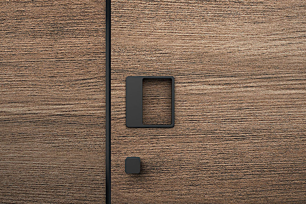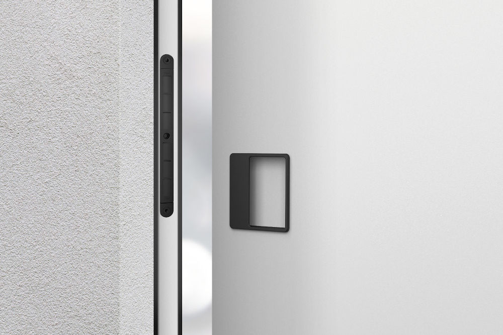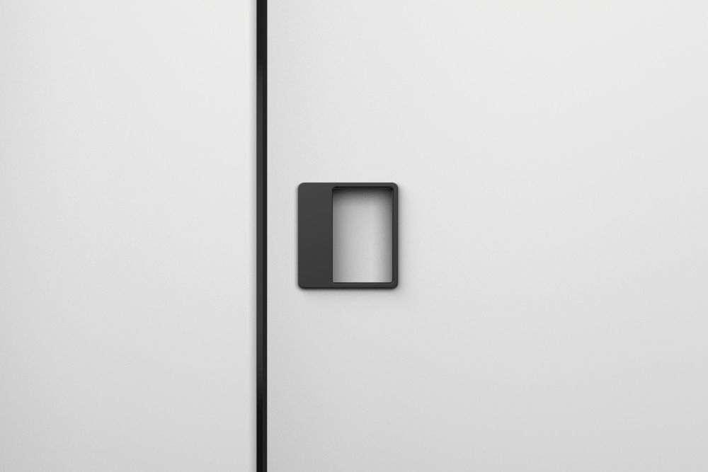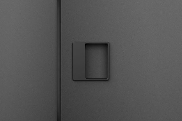 Square sunken pull handle easy to use with 2 - 4 fingers. Pull handle with a possibility of changing / replacing the internal magnetic plate to match the surface / color of the pull handle with the door or to make the door control area more visible.