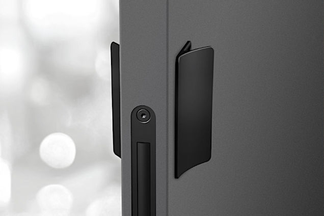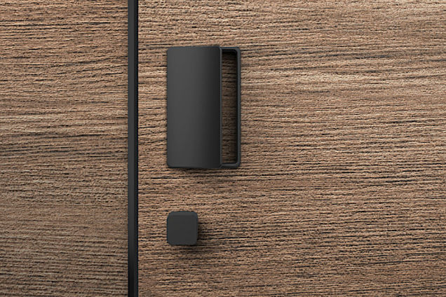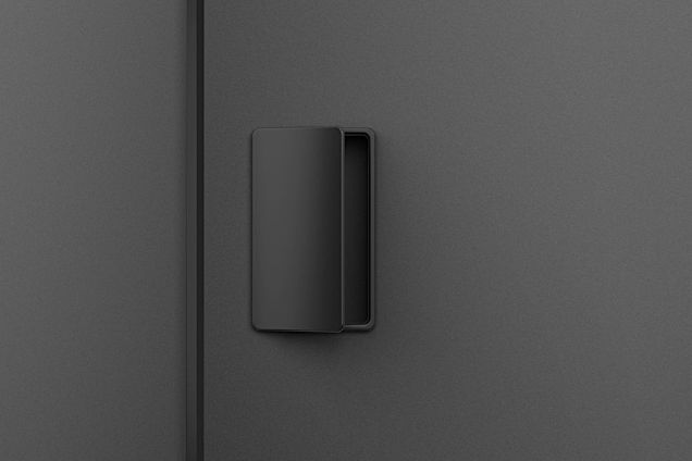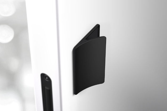 Smaller version of the pull handle with whole hand control. Handle ergonomics with slight rounding of the handles gripping part, with the possibility of changing / replacing the internal magnetic plate to align the surface / color of the pull handle with the door, or to make the door control area more visible.