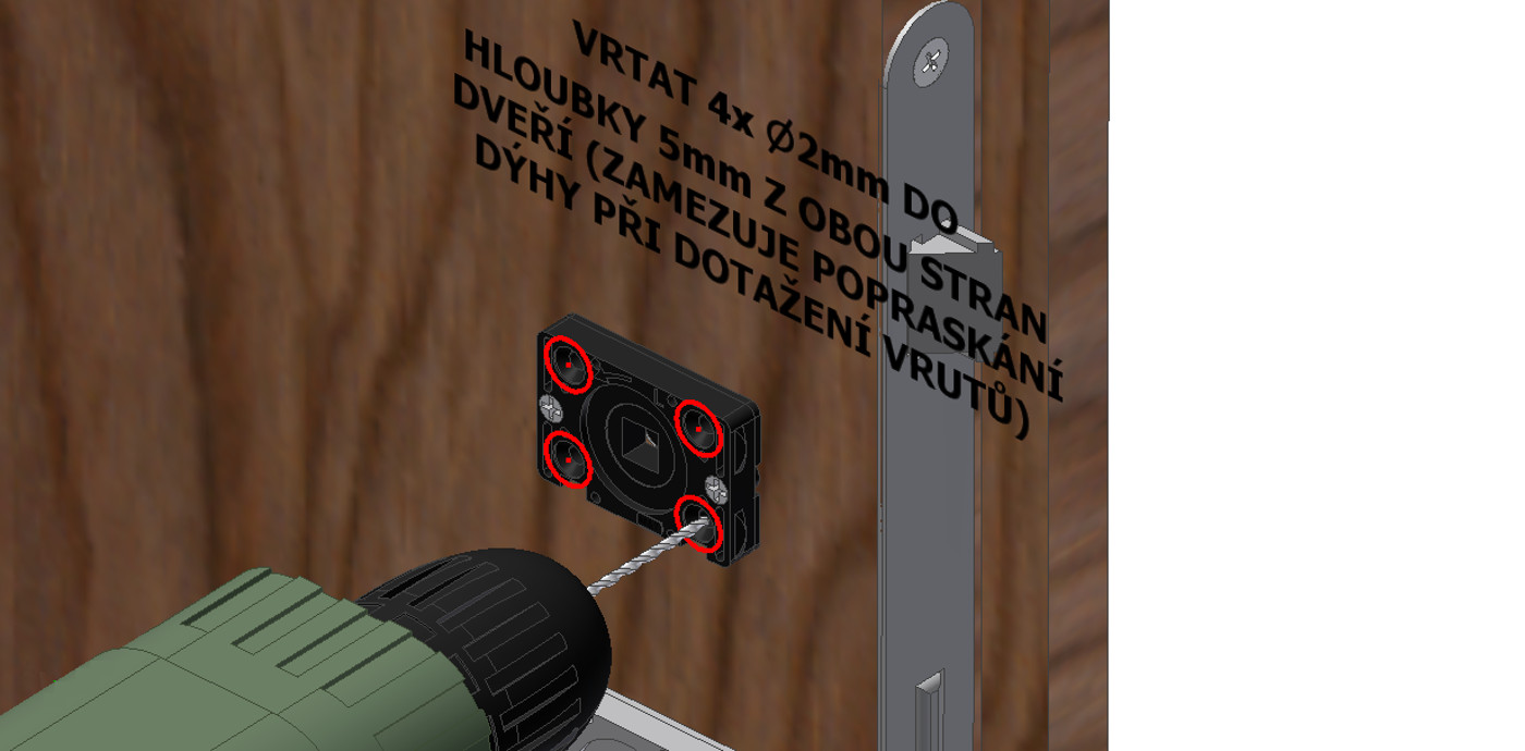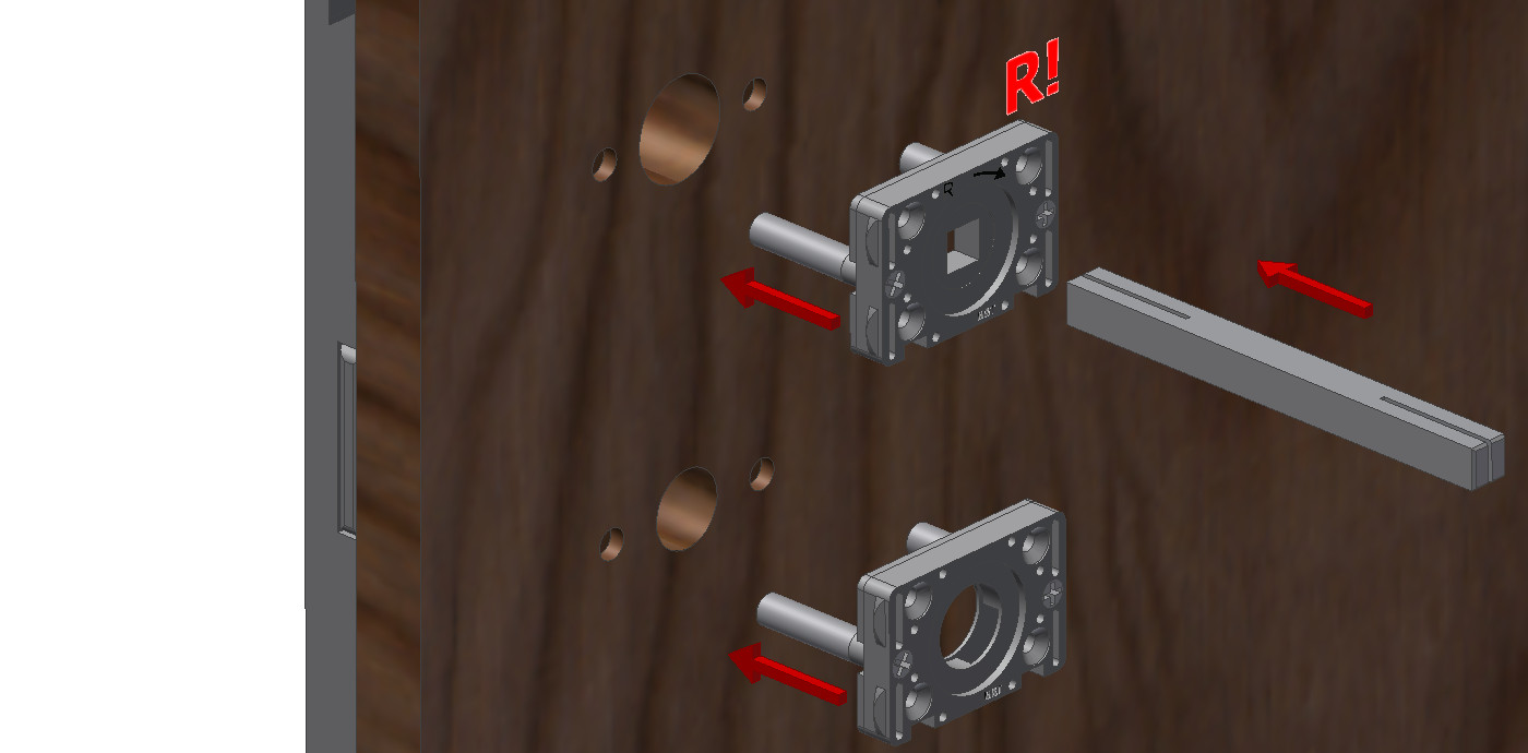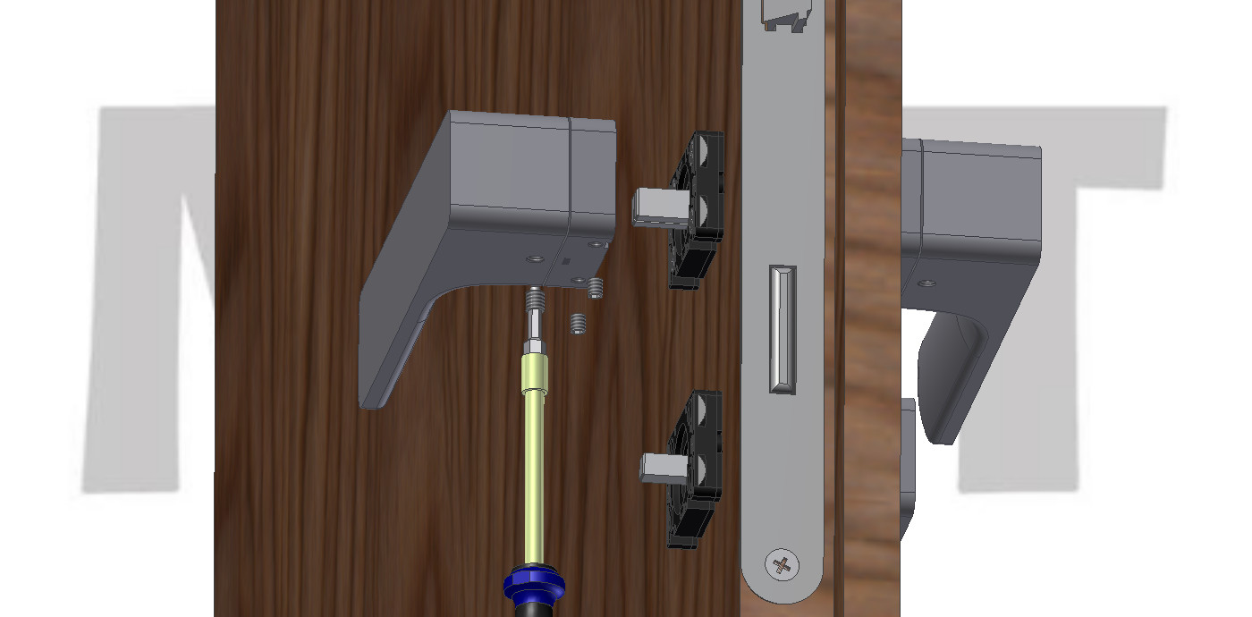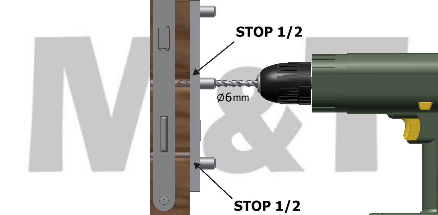 The basic premise is professional installation using our PROFI M&T template. Thanks that you can prepare precise door holes, where the sleeves (rollers) are firmly fixed of two fitting halves through the lock and prevent the later loosing and wobbling of handles.