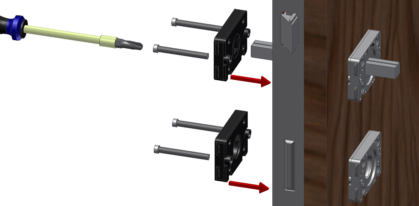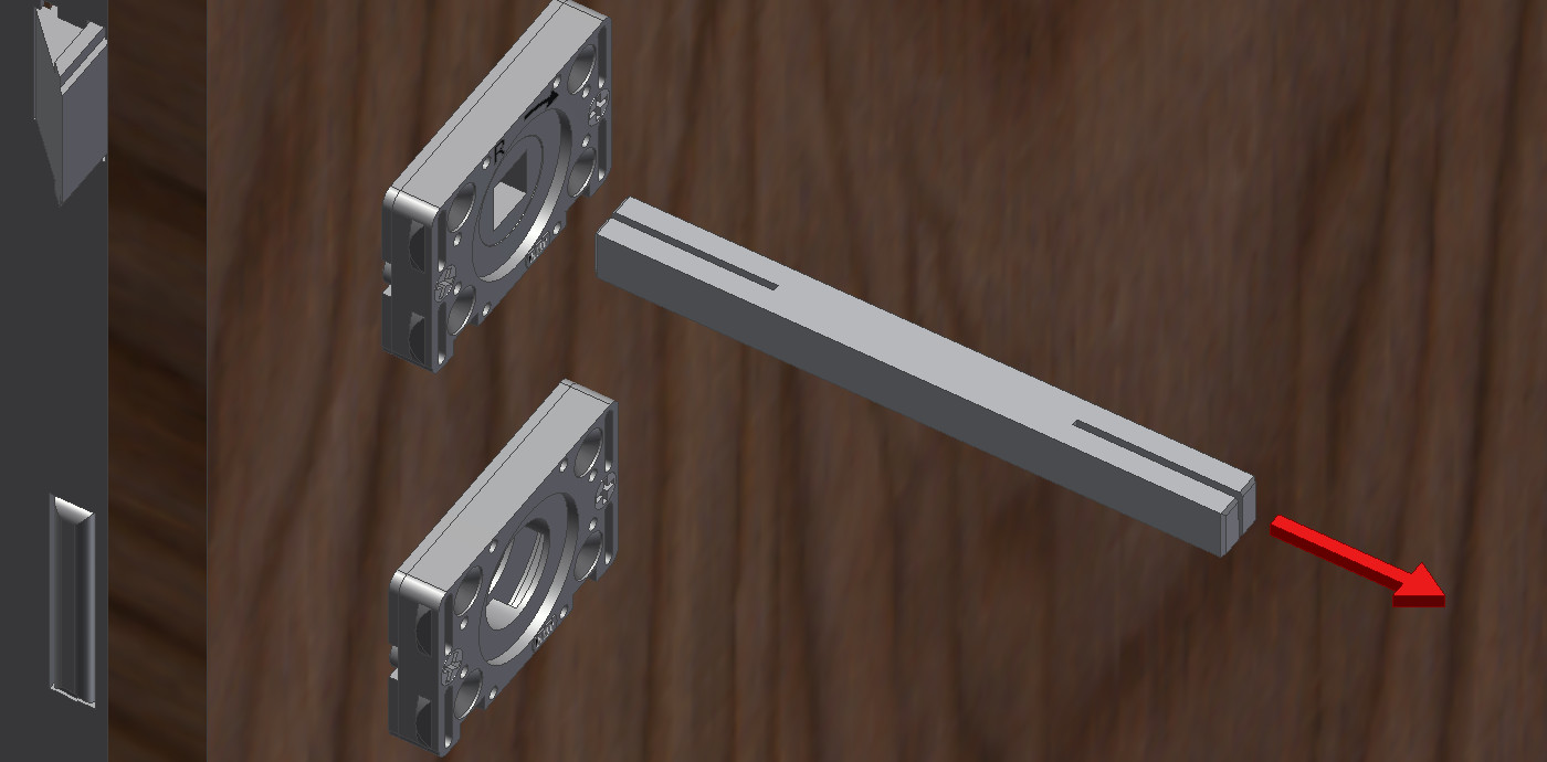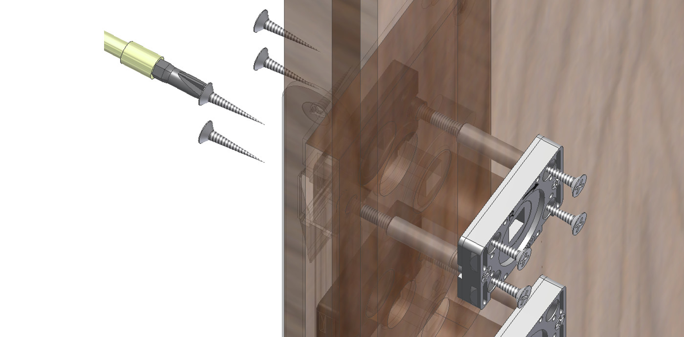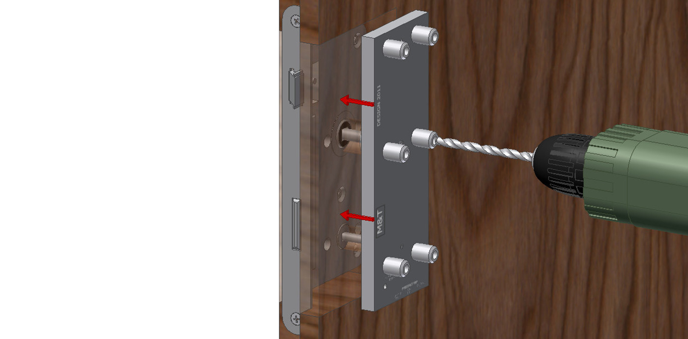 The basic premise is professional installation using our PROFI M&T template. Thanks that you can prepare precise door holes, where the sleeves (rollers) are firmly fixed of two fitting halves through the lock and prevent the later loosing and wobbling of handles.