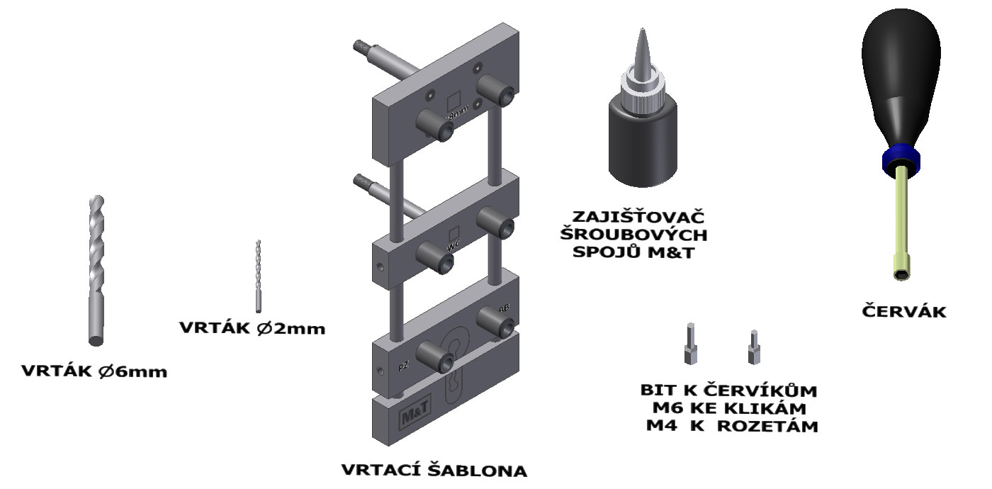 There is a drawing of the drilling template I. generation. Now we use the drilling template II. generation that is absolutely universal and should not be missed by any assembly company selling products M&T.